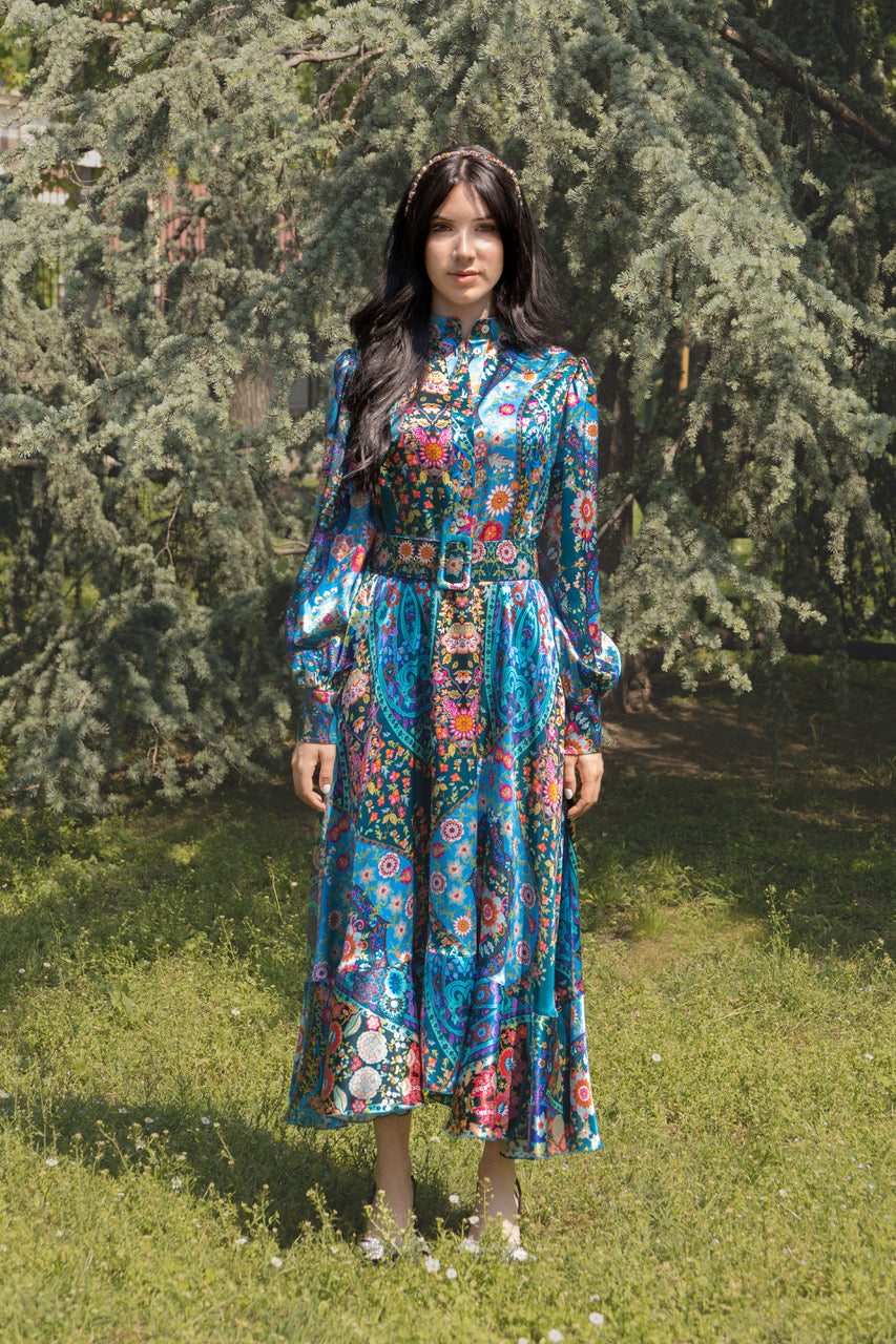Silk dress with belt